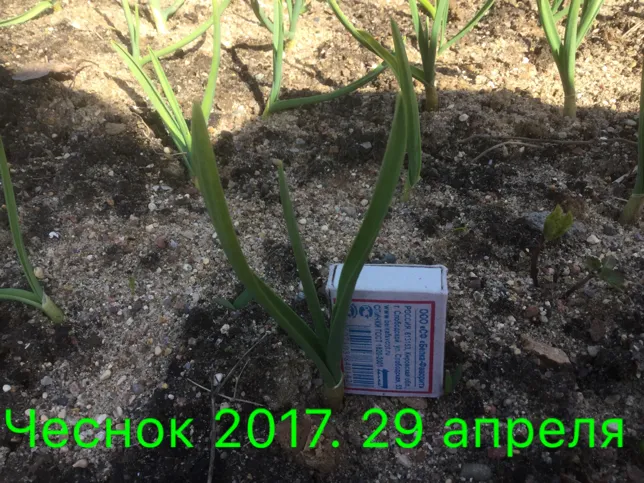 За несколько дней хорошей и теплой погоды чеснок вытянулся, можете сравнить вид чеснока.