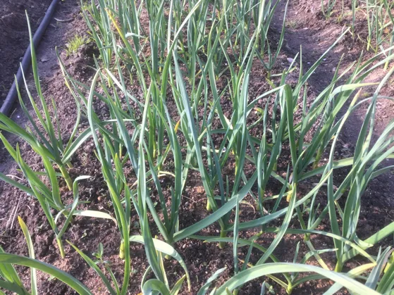 Продолжаю публиковать фотографии с грядок. Чесноку не страшен холод, который установился в Подмосковье. Этому растению важна вода. Это для него главное. Делаем вывод. В мае поливаем лук и чеснок без меры!!!