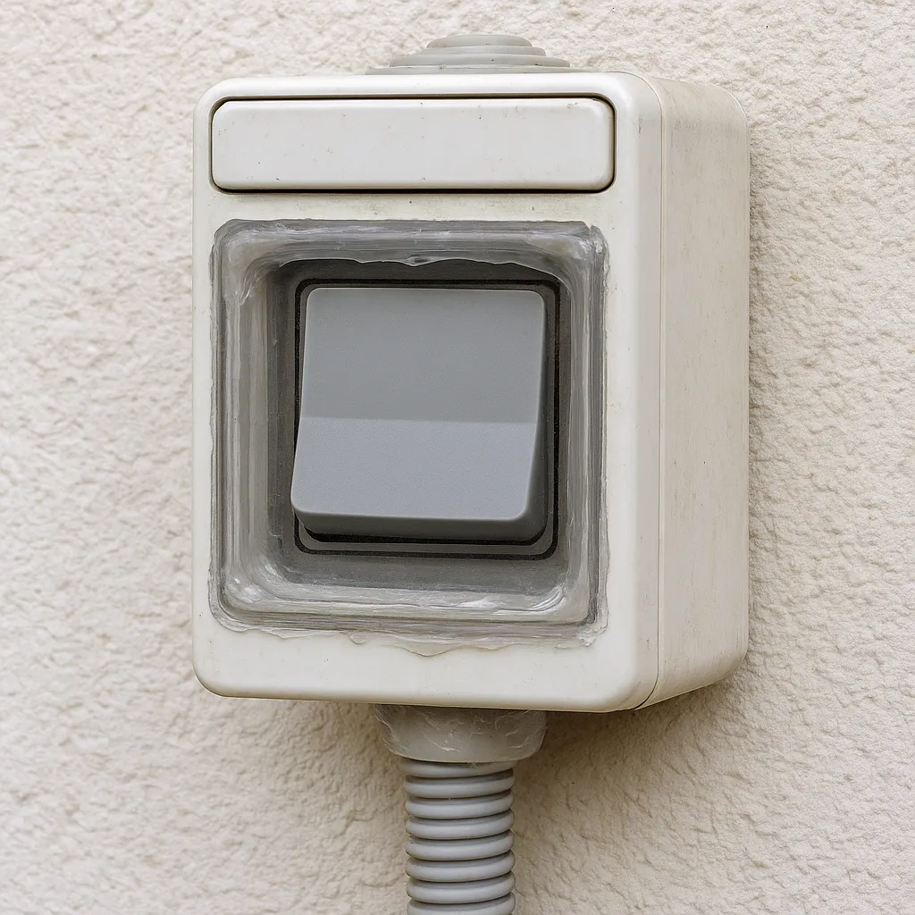 Короче, у меня на веранде и снаружи дома есть пара выключателей (один - на уличный свет, другой - для насоса). И вот сколько бы я с ними ни возился, они почему-то постоянно страдают от воды. То дождь косой, то туман, то конденсат. Вроде и под крышей, а всё равно со временем начинаются проблемы: то коротит, то просто залипает.