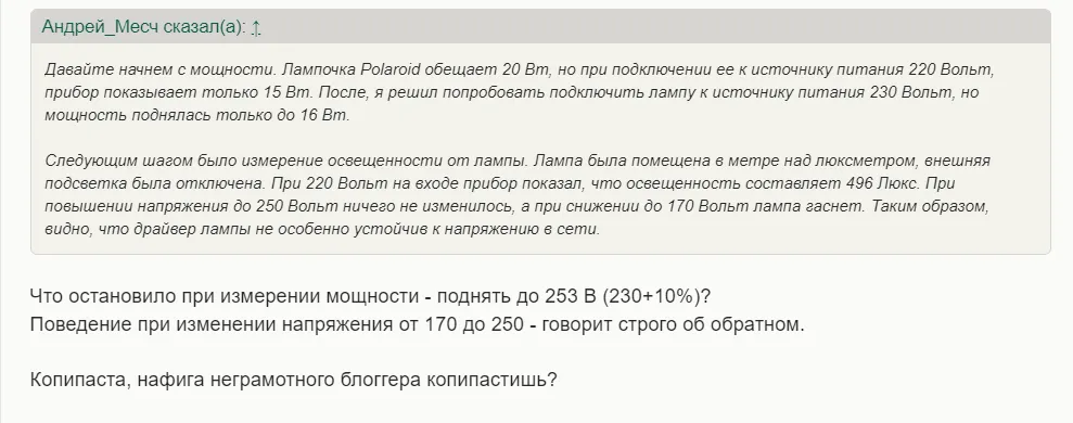 Конечно же, @Светотехника производит "контент" и сухие цифры строгим голосом, наверное, мало кому-то понравятся. Но иногда кажется, что все-таки, у нашего "разработчика" контента, к сожалению, есть некоторые пропуски в базовых вещах...