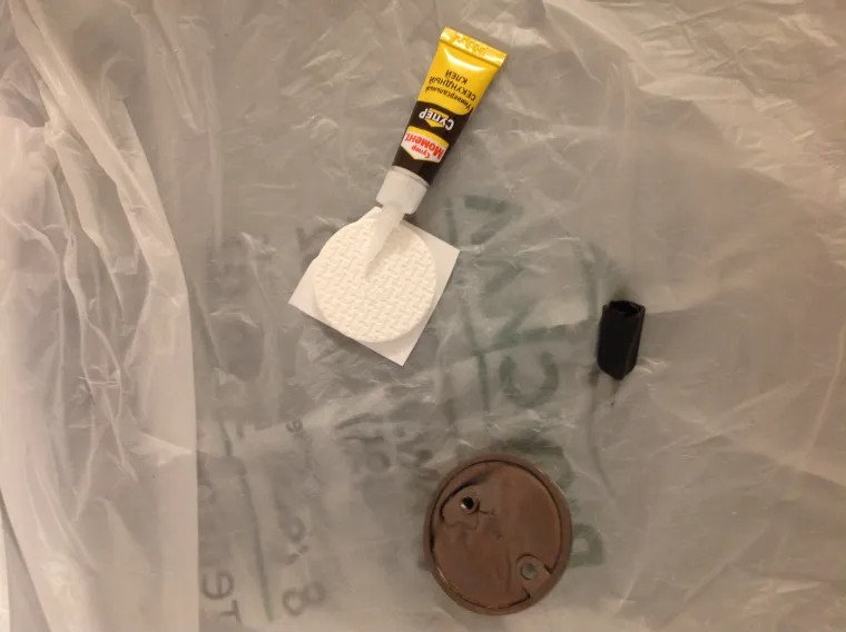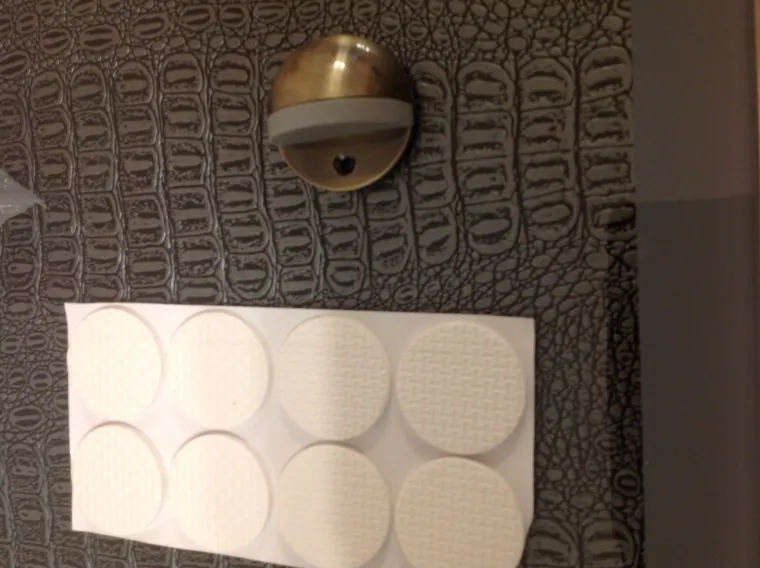 Но вот прокладочки такой в оби тоже не было, зато были прокладочки для мебели (наклеиваются на ножки мебели, чтобы не царапала пол). Вопрос того, чтобы приклеить прокладочку к стопперу я решил побороть с помощью клея момент.