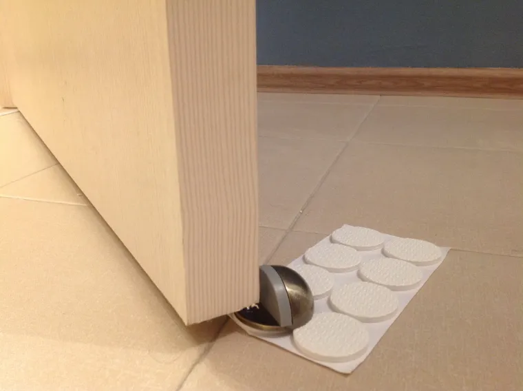 Ну что же, значит придется делать самоклеющийся стоппер для двери своими руками, собирать его из составляющих частей. Как уже понятно, нам нужен стоппер и нужно сделать его самоклеющимся. Значит мне нужен какой-то простой стоппер, какая-то прокладочка, которая клеится с двух сторон и все. Приклею прокладочку к стопперу одной тороной, другой к плитке и все готово.