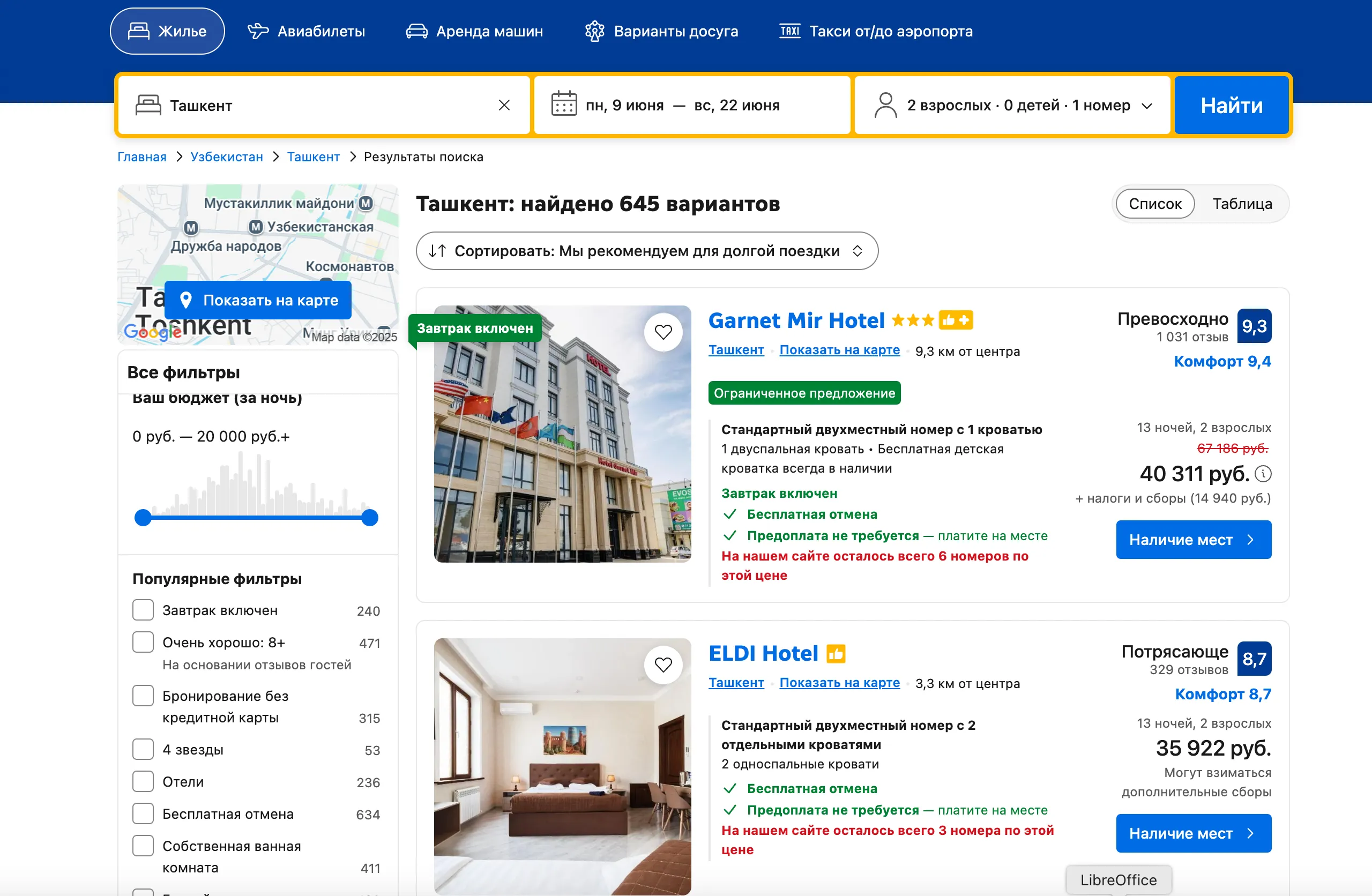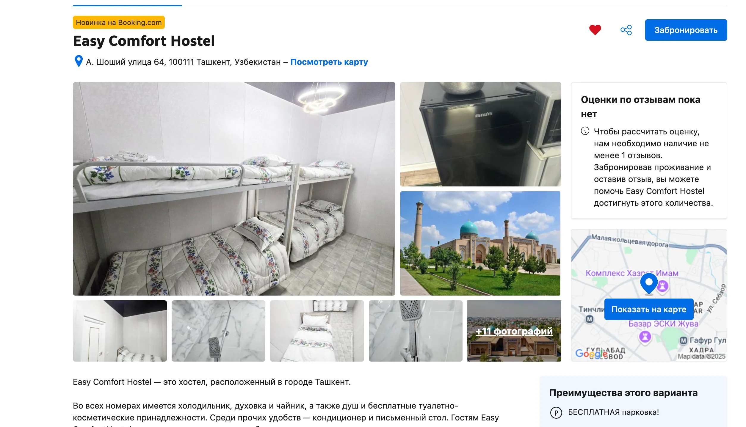 Первое что делаем - ищем отели в Ташкент на букинге, ибо в 2025 году развелось куча всяких сервисов, которые ему подражают, но все понимают что действительно серьезная компания по нахождению отелей одна.