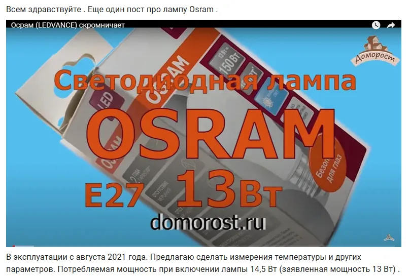 Всем здравствуйте ! Вот действительно всегда всем было интересно почему одно и тоже у одних производителей работает годами , а у других нет. Например сколько можно перечислить производителей светодиодных ламп и конкретных моделей , которые отработали более трех лет? Про светильники сложнее , дома в основном лампы. Ранее я делал миниобзоры светодиодной лампы Osram 13W . Модель 2019 года . Так вот в лампе импульсный драйвер на отдельной плате , а светодиоды соединены по три параллельно и такие цепочки собраны последовательно. Отработали уже более трех лет и до сих пор исправные . Первое , что выходит из строя - высыхает рассеиватель .