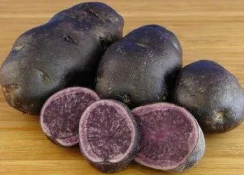 Необычный по своей окраске сорт «Гурман». Еще один фиолетовый картофель. Этот сорт можно употреблять в пищу сырым. Клубни черно-фиолетового цвета с сине-сиреневой мякотью будут отличным украшением салата или оригинальным решением для пюре. Ваши домашние будут в восторге. Весь фиолетовый картофель и этот сорт не исключение содержат высокое количество антоцианов, веществ, блокирующих вирусы. Картофель требователен к температуре окружающей среды и почвы, они недолжны опускаться ниже 10 градусов. Также картофель требователен к почвам. Предпочитает легкосуглинистые, торфяники, супеси. Сорт относится к средне-поздним и имеет необычный вкус.