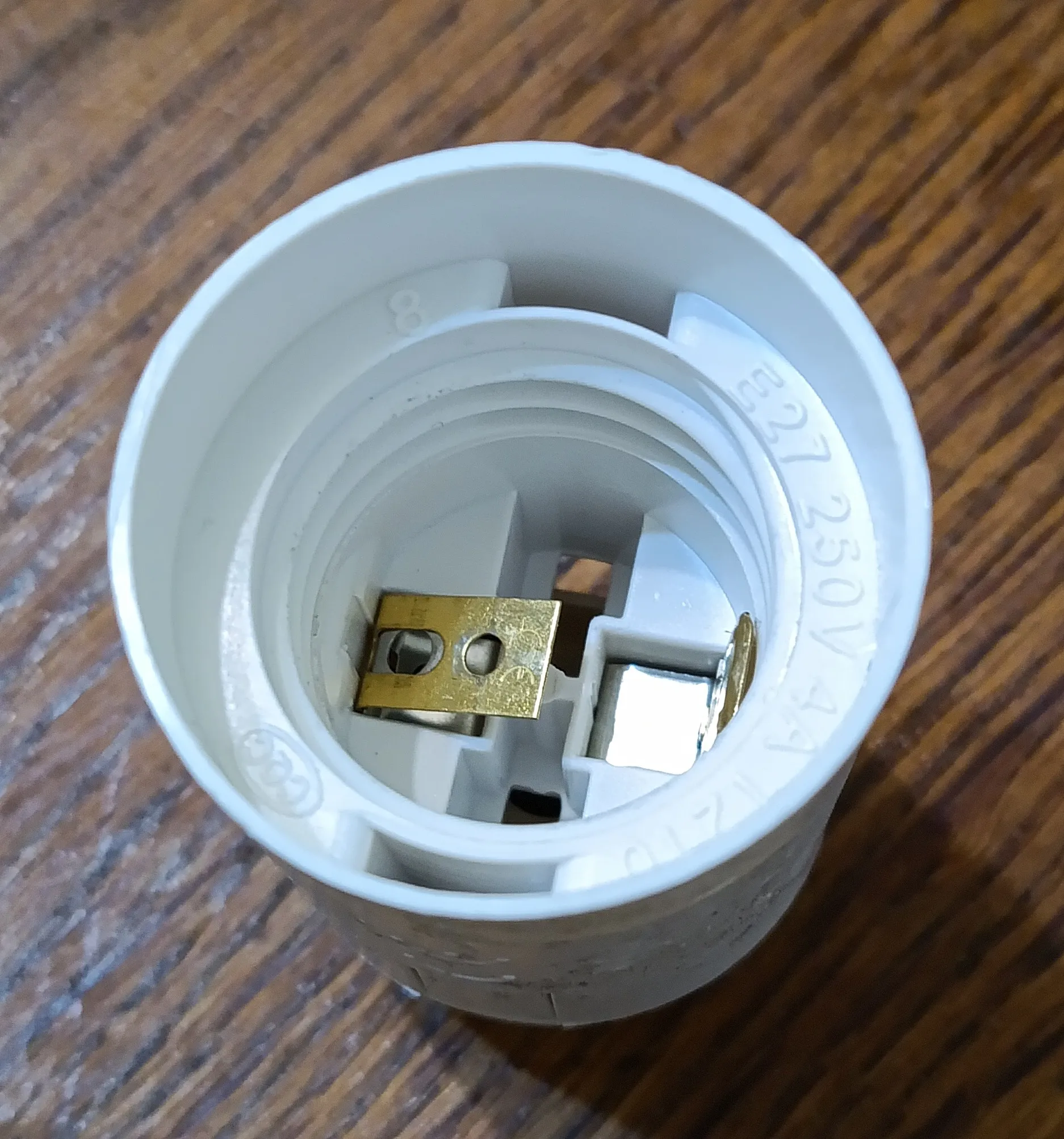 Даже после небольшого уменьшения тока в цепи светодиодов нагрев остался приличным . В общем решил я проверить новый патрон для ламп Е27 и вкрутил в него лампу .