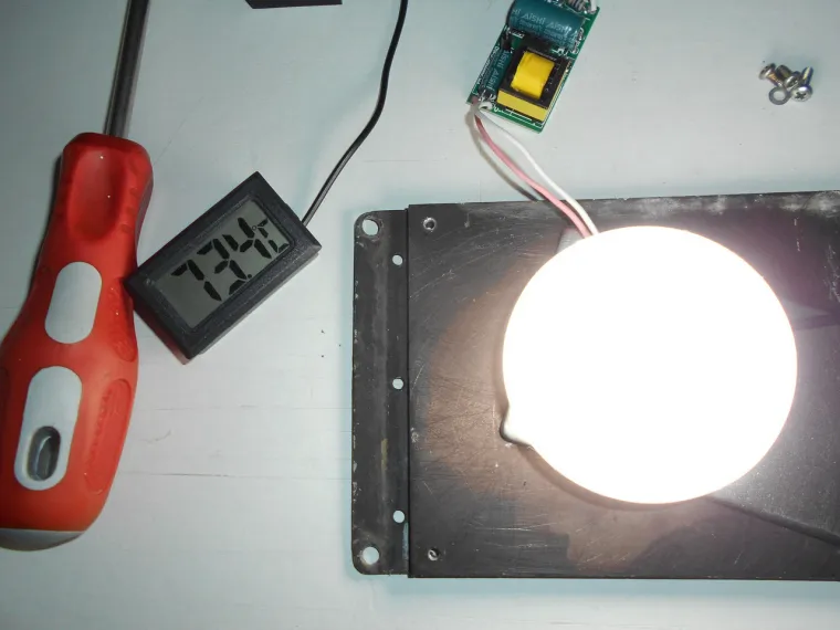 Понял, значит идете по пути снижения мощности... Применение термостата позволяет получать максимальную мощность на ограниченном промежутке времени, а при перегреве - сбрасывать мощность... Неизвестно, в каком режиме будет работать ваш светильник.