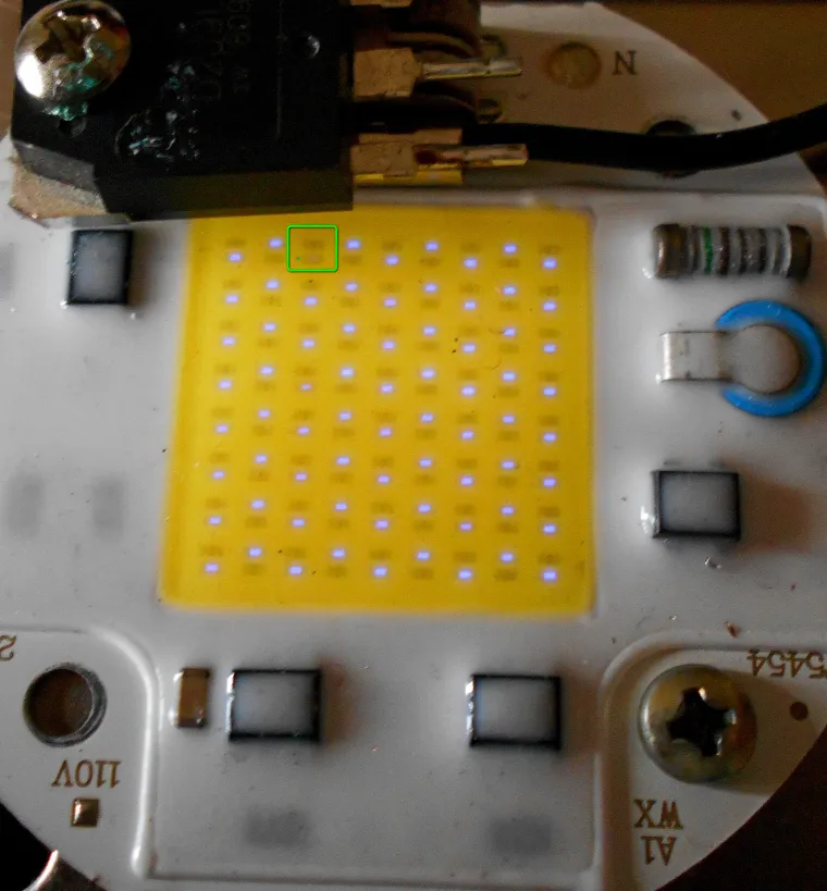 @Схемотехник я предполагал , что с охлаждением матрицы будет не просто. Поэтому взял COB на 110 Вольт и драйвер к нему. В общем пока пробую снижать мощность с 29 до 19 Вт. Световой поток не очень сильно изменился, а вот температура уже не такая критическая . Отпаял резистор 1,5 Ома и налепил вместо него чего было под рукой . Ток теперь 0,167 А