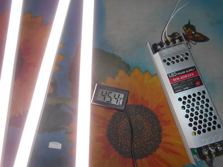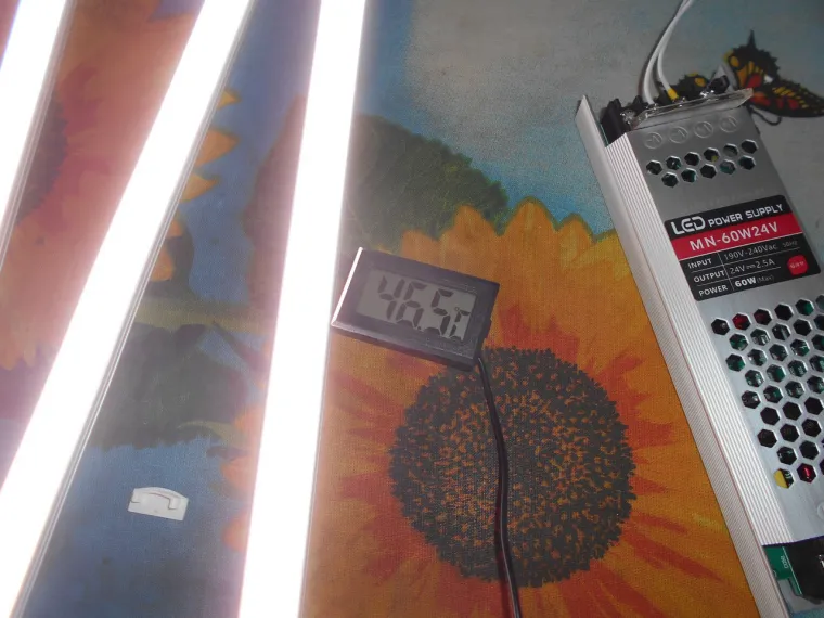 @Схемотехник кстати Вы спрашивали зачем COB лены паковать в алюминиевый профиль . Я термодатчик вложил внутрь и вот что вышло. Через 15 минут работы 45,4 град.