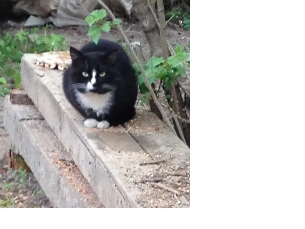 Очень интеллигентный котяра. Пришел, посмотрел что я ем, я ему бросила кусочек черного бородинского хлеба. Муж сказал, что коты это не едят, а этот подошел, откусил и отошел. Вежливый. Ну а потом пошел чесать когти об мою бузину! Подлец!!! Но вежливый. По грядкам не ходит, только по межам и дорожкам,