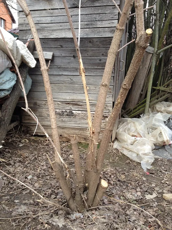Подумав над всеми предположениями, я склоняюсь к версии @Kachok. Я вспомнила, что у нас тут сороки живут и для строительства своего гнезда берут только самый крепкий материал. Мы когда-то пилили дерево, на котором осталось их гнездо. Так вот оно было свито из проволоки. Думаю, что они то и попортили бузину. Но это только предположение. Чтоб знать точно нужно их гнездо достать, а это невозможно.
