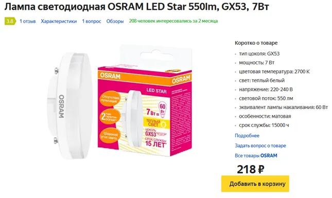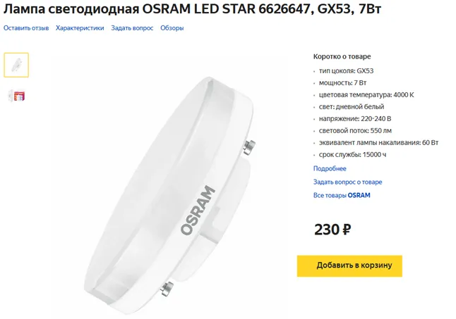 https://market.yandex.ru/product--lampa-svetodiodnaia-osram-led-star-6626647-gx53-7vt/993869795?text=OSRAM%20LED%20STAR%206626647&cpc=fLp9VffubP23tVmuXVjRVoW-eqvuxdHcGV7F9wf2tLFIG6OxewvA10IPyxZig4FktJfnindHRGDd9HIowbs5O1f0tvevKiLXpVQAo8bZkRp7KKmv6aea-YnxnuIj_z3e73j2BxZ9XHRwOWk-FPxFGslHjp0peB4wBs9PeRWndT1sc7rLrEIP6g%2C%2C&sku=993869795&do-waremd5=wSIrS9S23RWWqdt_CyEt8Q&cpa=1&nid=55150