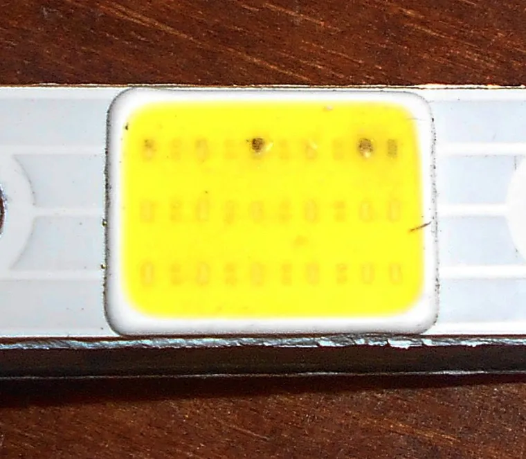 В общем были две лампы в эксплуатации на одном авто. Одна живая , а вторая описана выше. Получается в одной из ламп плохое качество COB матриц. Есть такая версия, что при выбраковке матриц на фабрике их не перерабатывают. Они так же идут в изготовление светотехнических устройств. Продавец делает скидку на пару ламп для авто. Покупатель "клюет" на скидку, но в одной лампе COB матрицы с браком. Все это прекрасно видно на стадии проверки на фабрике. Думаю под микроскопом все дефекты видно .