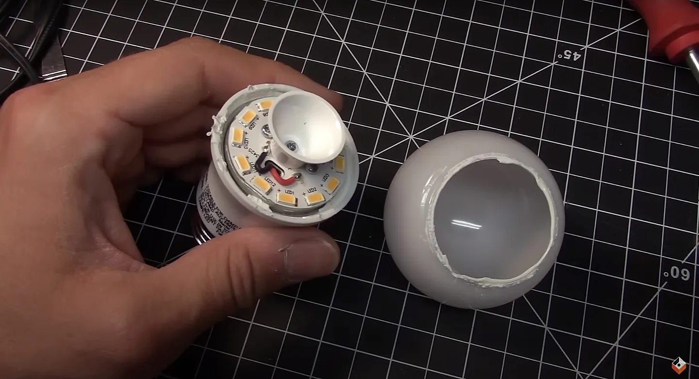 Открутим его для более детального изучения конструкции лампы . Диодная плата закреплена двумя саморезами . На алюминиевой плате размещены 12 однокристальных светодиодов.