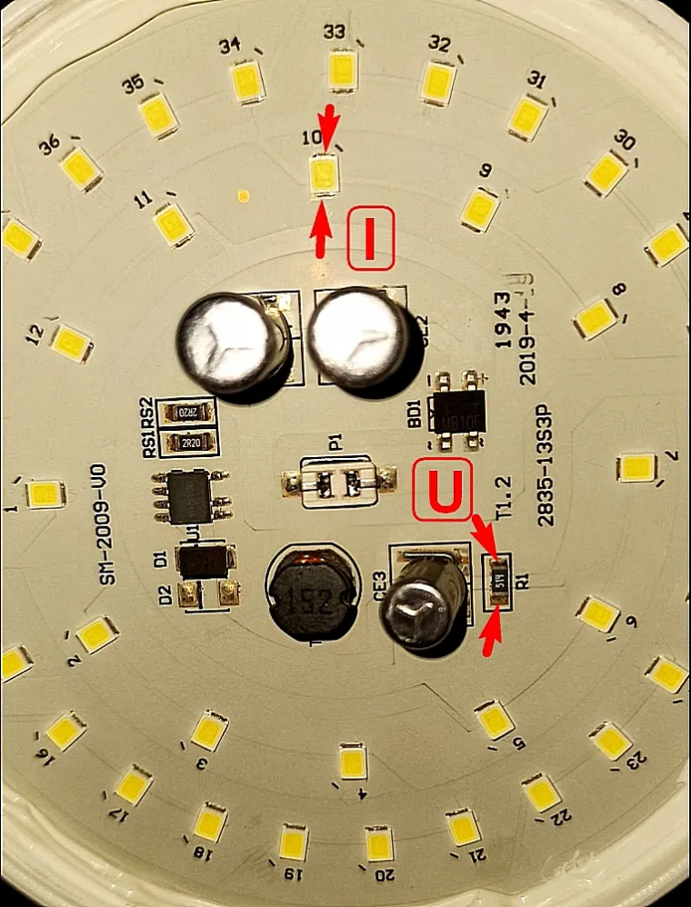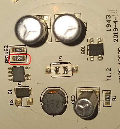 Чтобы снизить нагрев лампы, необходимо уменьшить ток через диоды. Если вы достаточно хорошо дружите с паяльником, то можно отпаять резистор RS1 или RS2. Эти резисторы задают прямой ток через диоды. Они включены параллельно. Один убираете - ток уменьшается. Нужно просто отпаять один - то есть оставить пустое посадочное место... Естественно, соблюдайте все меры безопасности. То есть пайка - только в обесточенном состоянии.