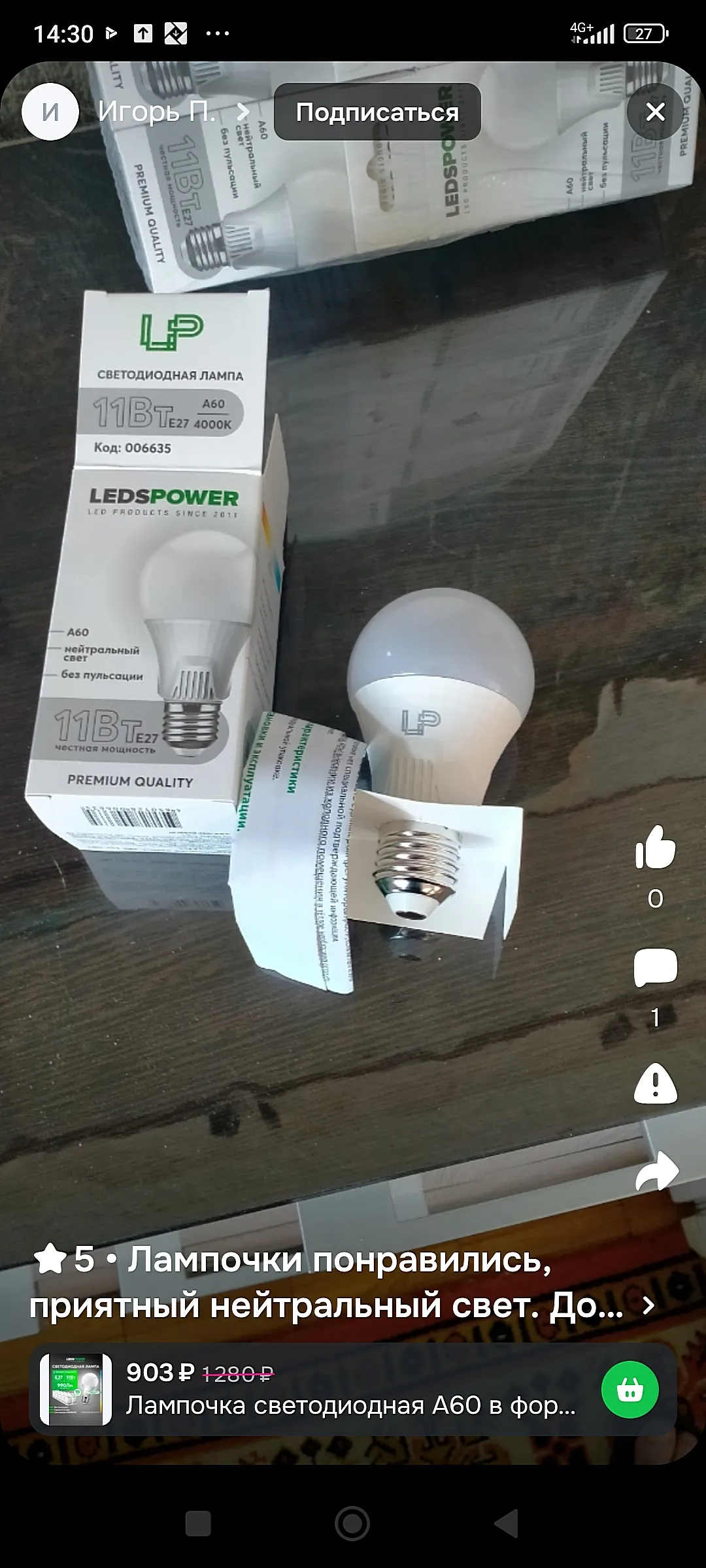 Лампа LedsPower 11 W за 76 рублей . Что известно ?