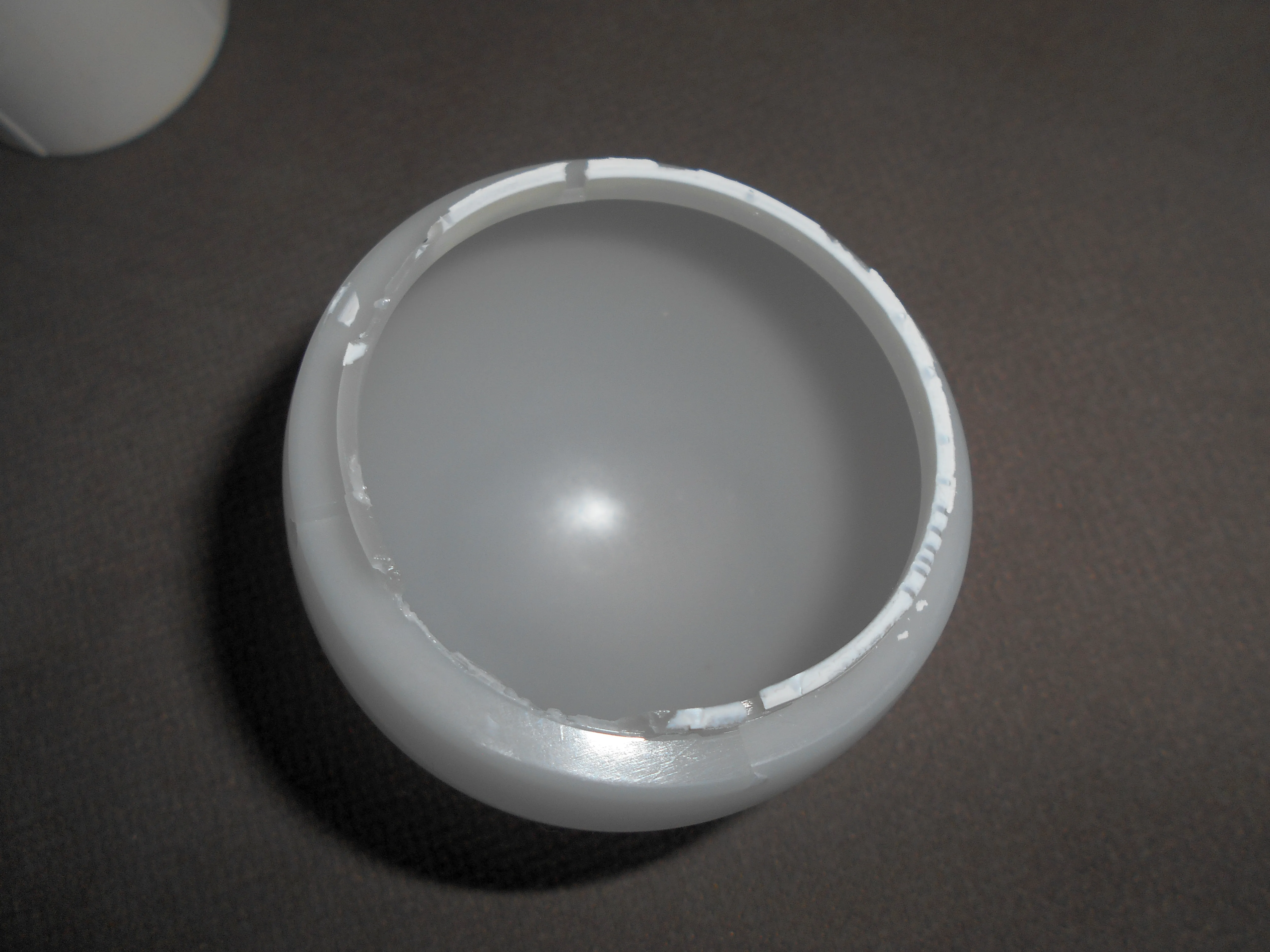 На рисунке не так заметна разница как видно ее глазами . А именно рассеиватель с очень слабым голубым оттенком слева и какой-то серый после трех лет эксплуатации . Рассеиватель за три года стал хрупким и при демонтаже частично остался в корпусе лампы .