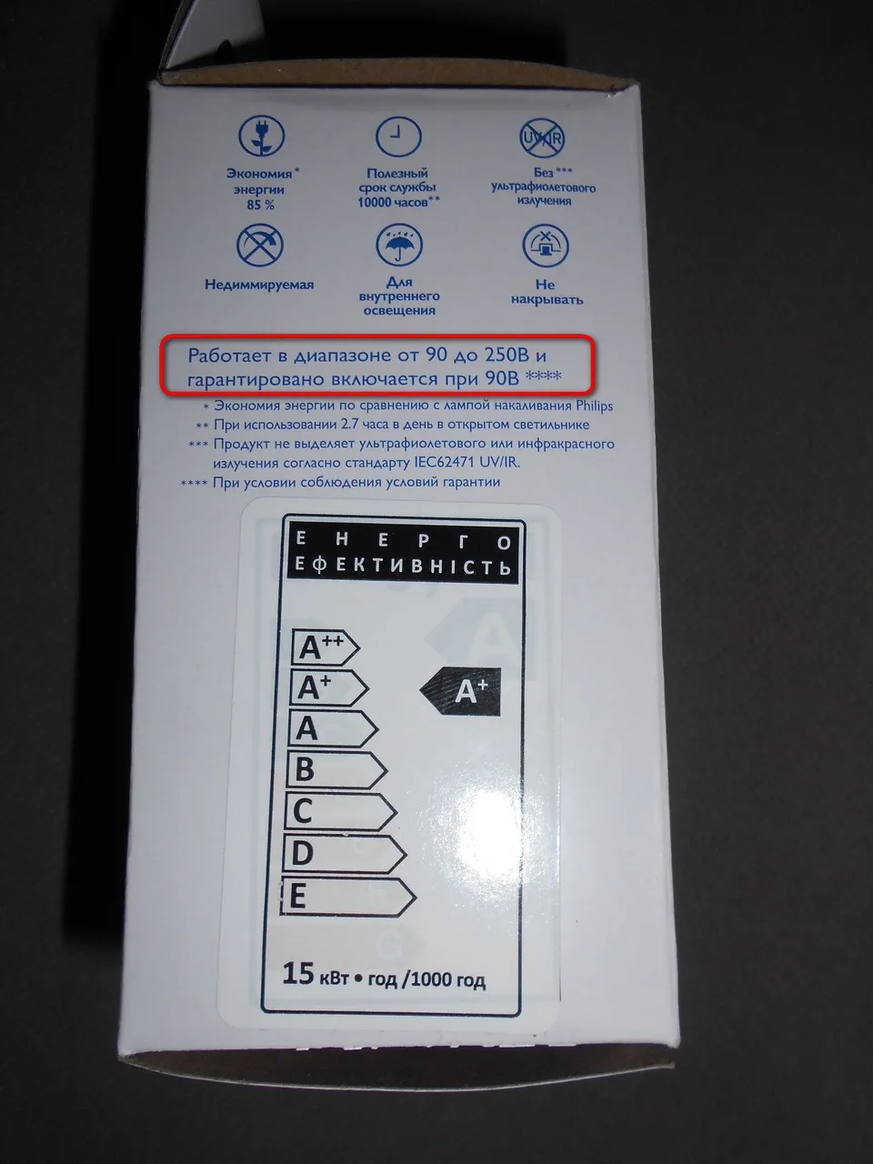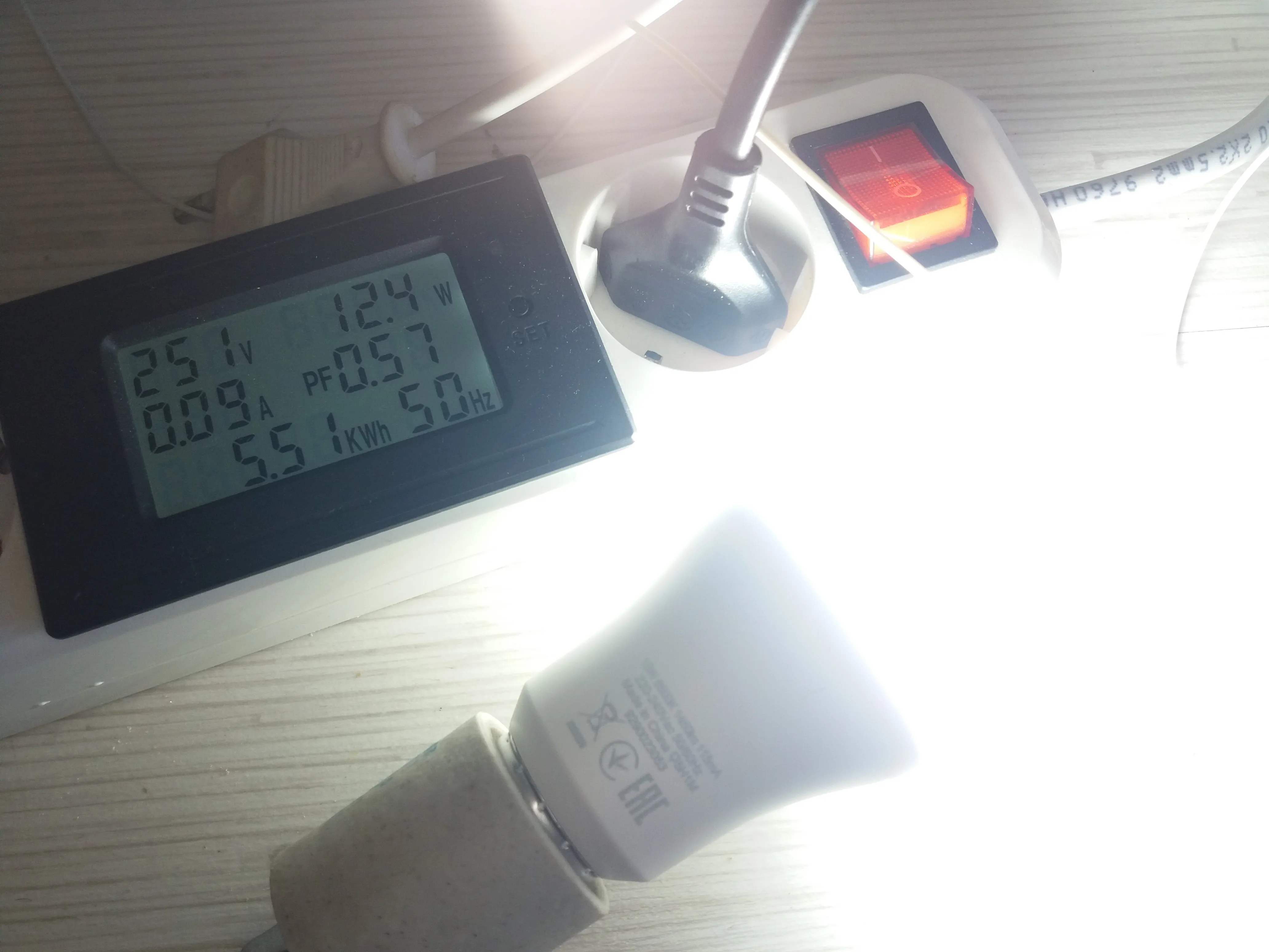 Лампа Philips работает от 90 ВольтК комментариямПодключаем , наблюдаем А теперь подаем 250 Вольт . Мощность потребляемая лампой 12,4 Вт .