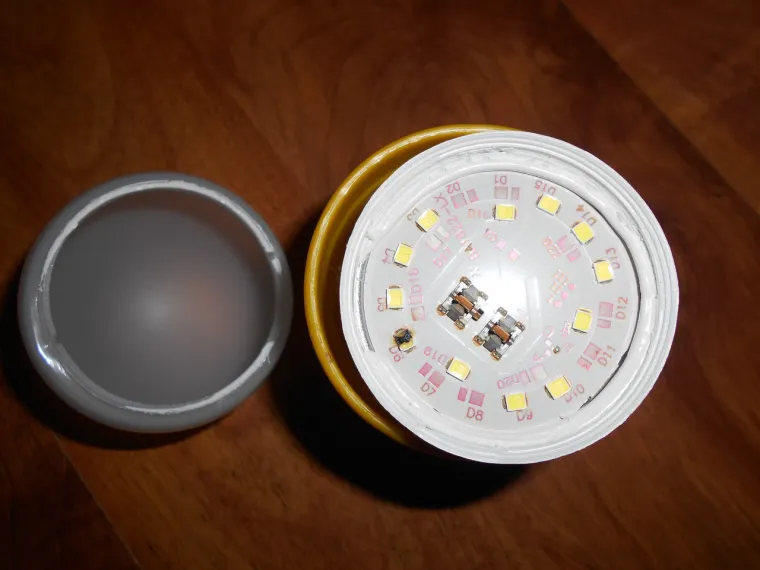 Еще интересно, каком там драйвер. Может быть он пришел в негодность? и поэтому диод сгорел (ушел в обрыв)? А вы планируете восстанавливать лампочку? У нее, если я правильно понимаю, неплохие габариты для заявленной мощности.