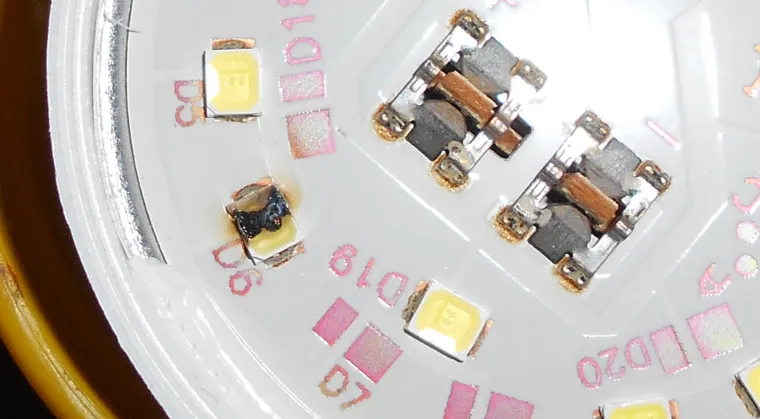 @Андрей-Туманенко Да. Знатно сгорел светодиод! Не просто слегка почерневшая еле заметная точка, а сгорел так сгорел. Сколько таких ламп купили? Наверняка не одну. Сгоревшую так позорно, надеюсь, продавцы поменяют без лишних слов, если, конечно, им важно работать и дальше и не терять своих клиентов. Вопрос теперь как поведут себя остальные такие же лампы.