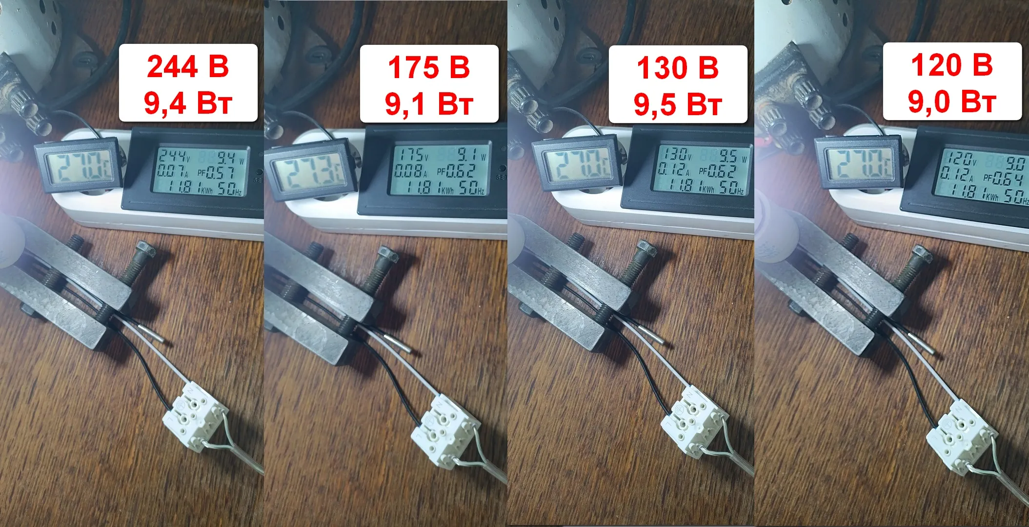 По результатам измерений понятно , что лампа 9,5 Вт с коэффициентом мощности 0,6 . Скорее всего под рассеивателем как и в модели 2020 года 8 светодиодов. Драйвер уверенно держит мощность в диапазоне 120-244 Вольт . Заявленный световой поток 1000 Лм под вопросом , т.к. нечем измерить . Полагаю 900 Лм.