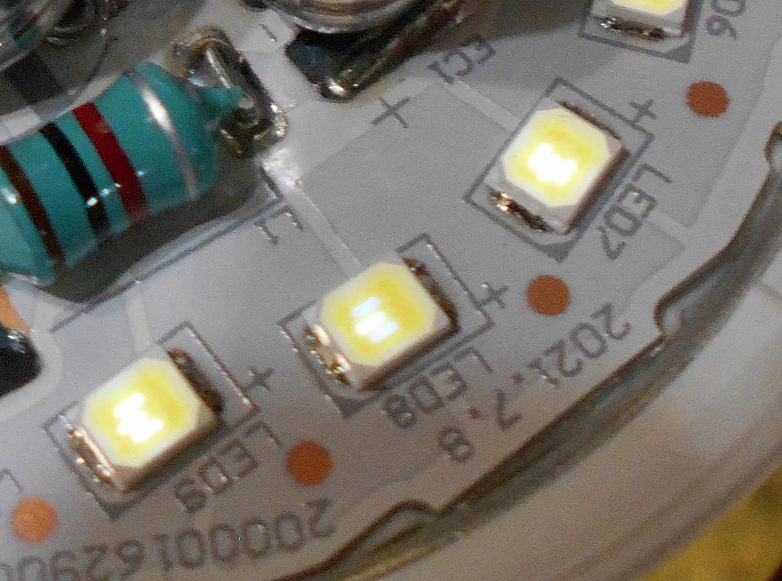 В целом, впечатление очень положительное. Некоторых вопросов мы уже касались. Вкратце напомню, что с точки зрения схемотехники лампа получает, почти наивысшую оценку, так как применяется полностью укомплектованный импульсный драйвер, с хорошей элементный базой (тот же дроссель на базе Ш-образного магнитопровода). С электрической точки зрения, элементы лампы, похоже, работают в оптимальном режиме, а светодиоды и вовсе недогружены, что хорошо.