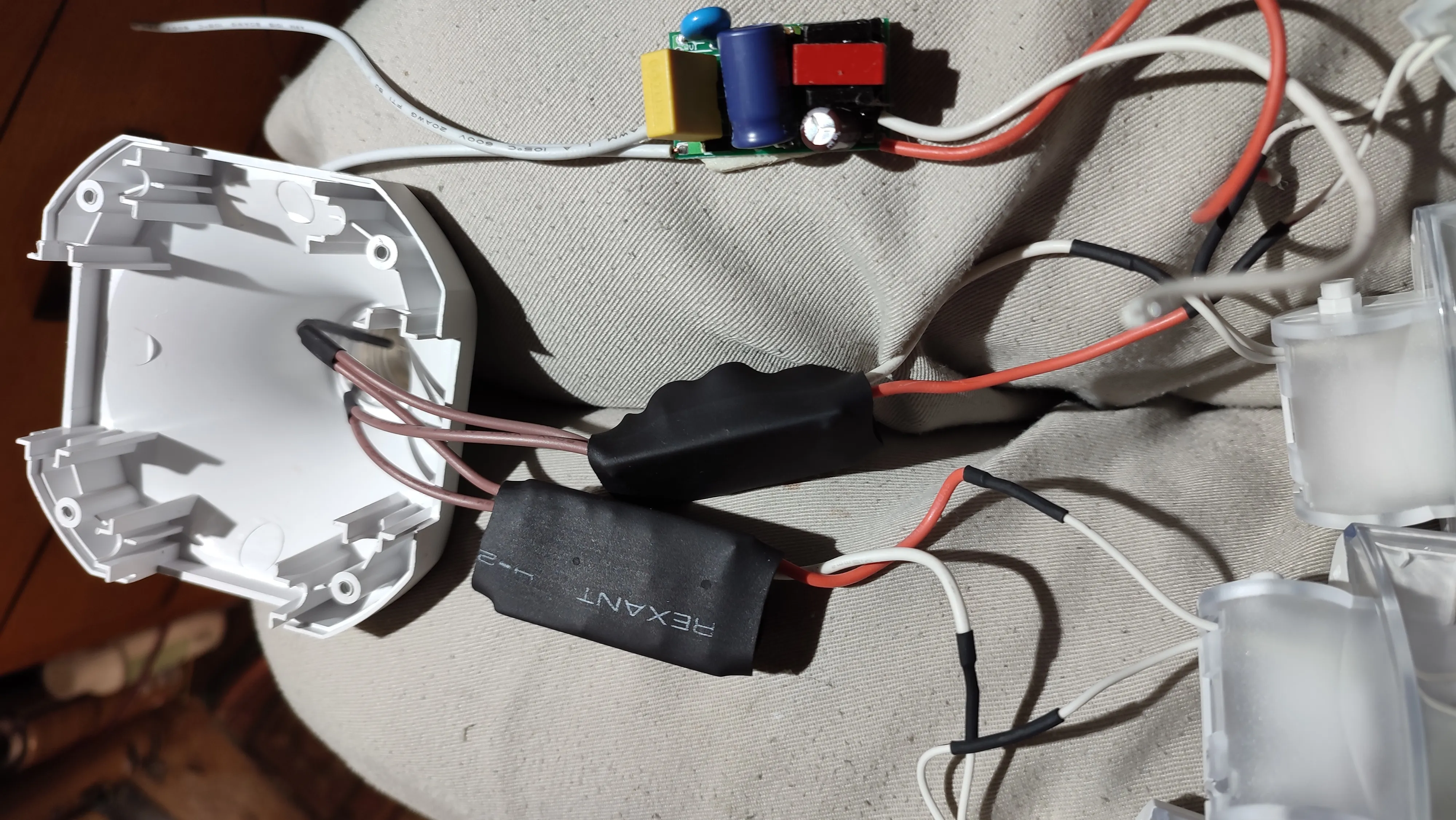 драйвера в этих эрах конечно жуть. небольшие колебания входного напряжения, 2-3-5 вольт приводят к заметным провалам в яркости. да на паялке включение и работа фена сразу приводит к мерцанию этих ламп, что на 4 лепестка, что на два. в итоге надоело, выкусил эту плату и поставил две других платы драйвера, по 2 лепестка на плату, последовательно. и светопредставление исчезло, такое уже делал с 2х лепесковыми лампами от эры.