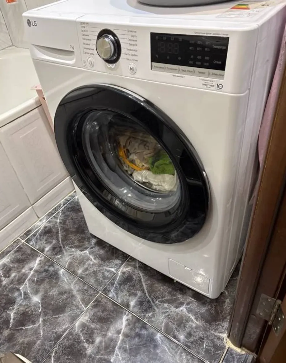 Мы с мужем купили свою первую квартиру и там была такая маленькая ванная комната что в нее почти ничего не влезало. Старая машинка, которую мы забрали у родителей была огромная и даже не подошла по размеру. Нам нужна была какая то очень узкая модель, но чтобы она могла стирать много. Я долго искала и нашла эту LG F2V3HS6W. У нее глубина всего сорок пять сантиметров и при этом она стирает целых семь килограммов. Это было просто идеальное сочетание для нашей маленькой ванной.