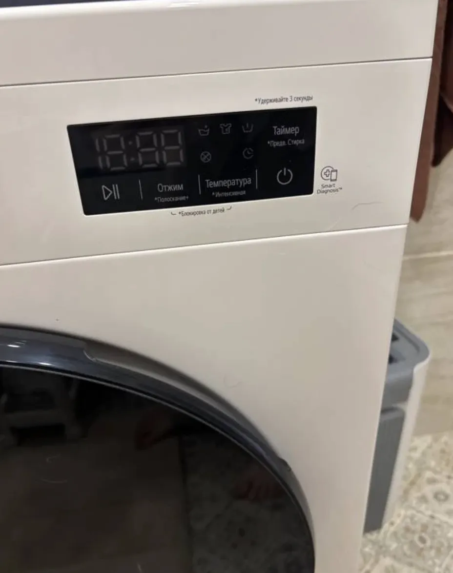 Теперь о том что не понравилось и это портит впечатление. Главное это цена, она конечно пугала, но в итоге мы не пожалели, что взяли именно ее. Отжим. Хоть она и тихая при стирке, когда она выходит на тысяча двести оборотов, она шумит сильно. Даже прорезиненные ножки не спасают. Не так громко как старая, но все равно слышно, особенно в конце цикла. У нее есть самодиагностика, честно, не пользовалась ей и не понимаю как она работает, но в случае чего она есть.