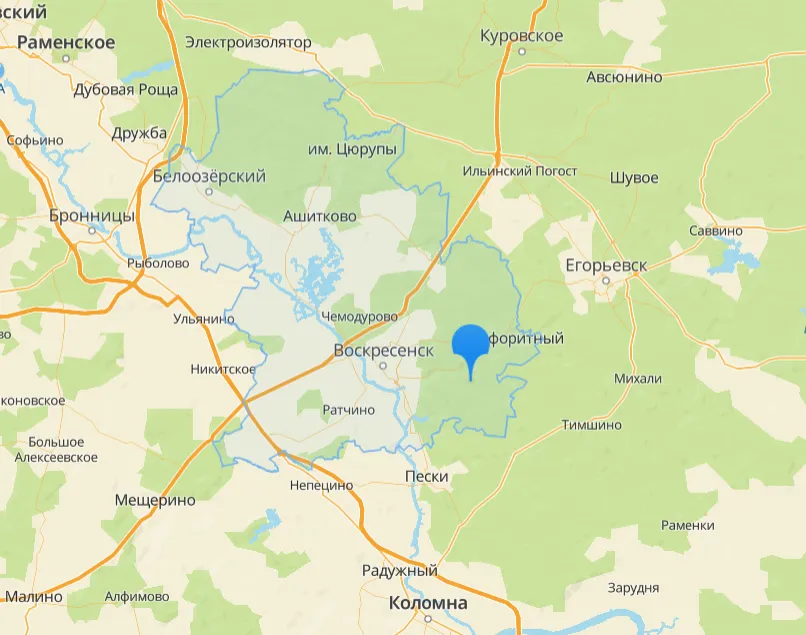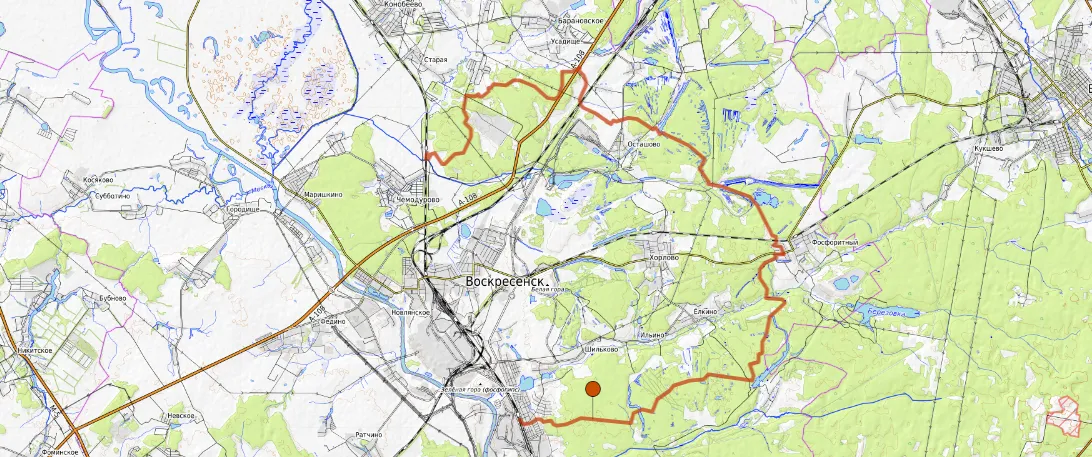 Вблизи города Воскресенк. Если ехать на электричке, очень удобно начинать маршрут с станции 88 км.