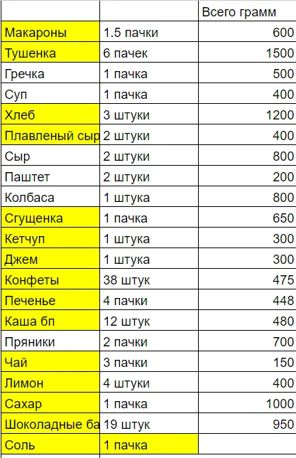 Наша раскладка продуктов в ПВД на 3е суток на 8 человек: