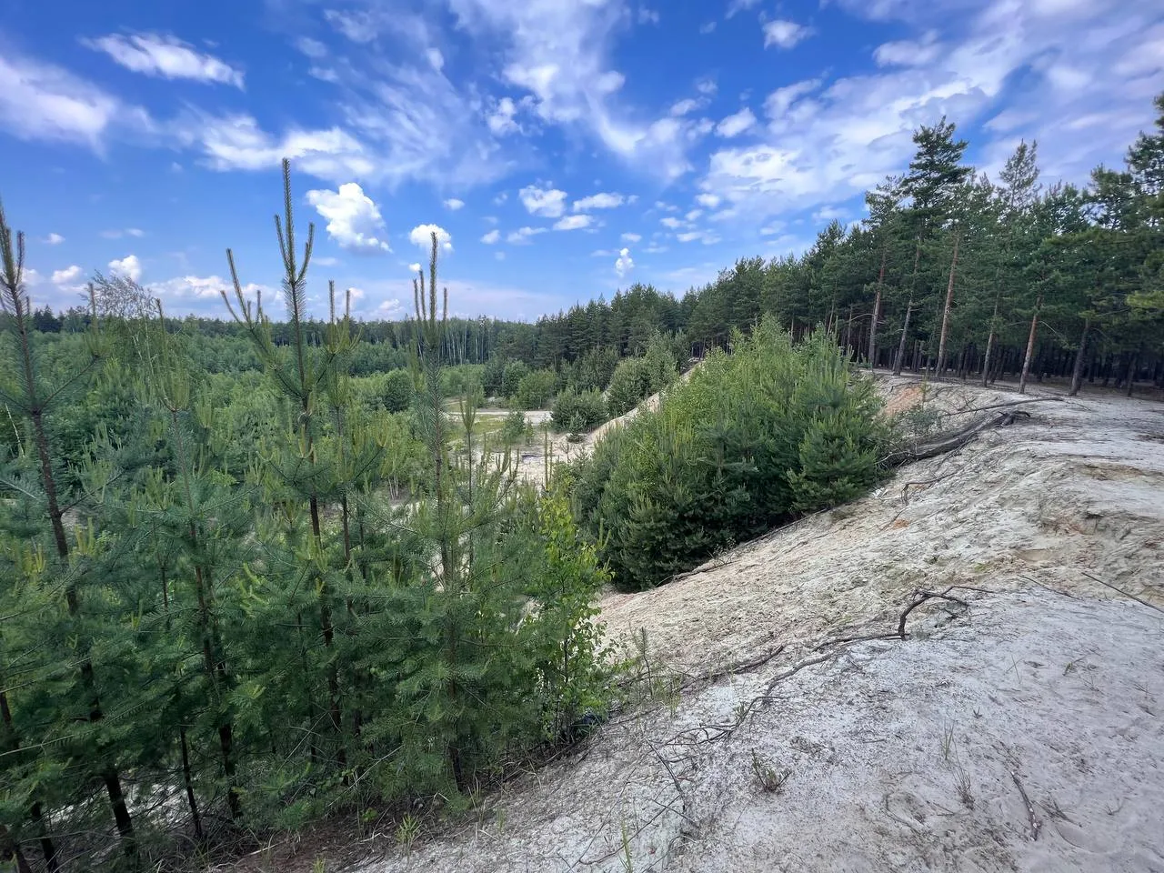 На местах карьеров образовались озера, а на территории выроботки были посажены леса.
