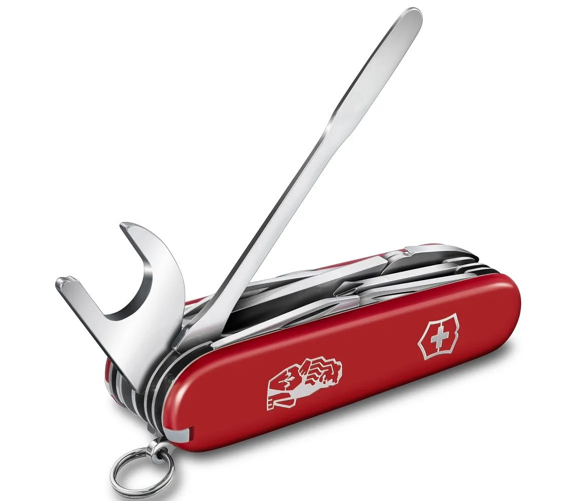 Остальные инструменты подбирались не «для количества», а по реальной пользе. Victorinox прошлась по своему огромному каталогу и оставила только то, чем бариста действительно пользуется каждый день. Так, длинное лезвие подходит для плотных вакуумных пакетов с зерном, короткое — для мягкой упаковки, чтобы не превратить её в клочья. Консервный нож с отверткой помогает аккуратно вскрывать жестяные банки, если кофе упакован в металл.