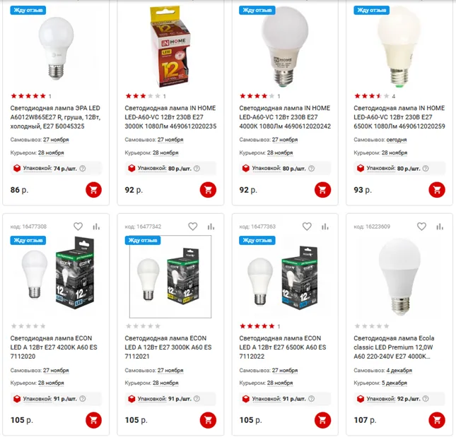 Многовато будет … Это не 5 шт Просто так картинку даже и не посмотреть … Пусть вверху самые дешевые , что тогда ? https://spb.vseinstrumenti.ru/electrika_i_svet/lampy/svetodiodnye/e27/show_cat.php?cat_id=5393&tagpage_id=2316&isSearchPage=0&bdc%5B233944%5D%5Bfrom%5D=12&bdc%5B233944%5D%5Bto%5D=12&bdc%5B233944%5D%5Bon%5D=1&bdc%5B233944%5D%5Btype%5D=slider&bdc%5B234197%5D%5Bon%5D=1&bdc%5B234197%5D%5Btype%5D=check&bdc%5B234197%5D%5Bids%5D%5B44561%5D=on&formType=param&asc=ASC&orderby=price#goods Тогда для первых 8шт по ценам будет так: