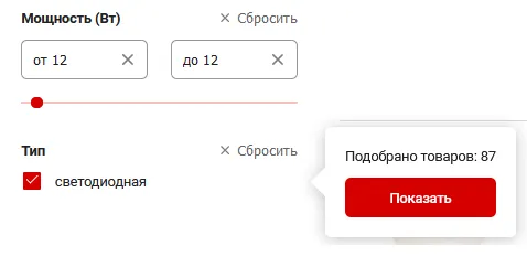 Теперь смотрю все Е27 12W светодиодные на том же сайте . И вижу 87шт: