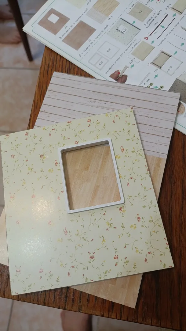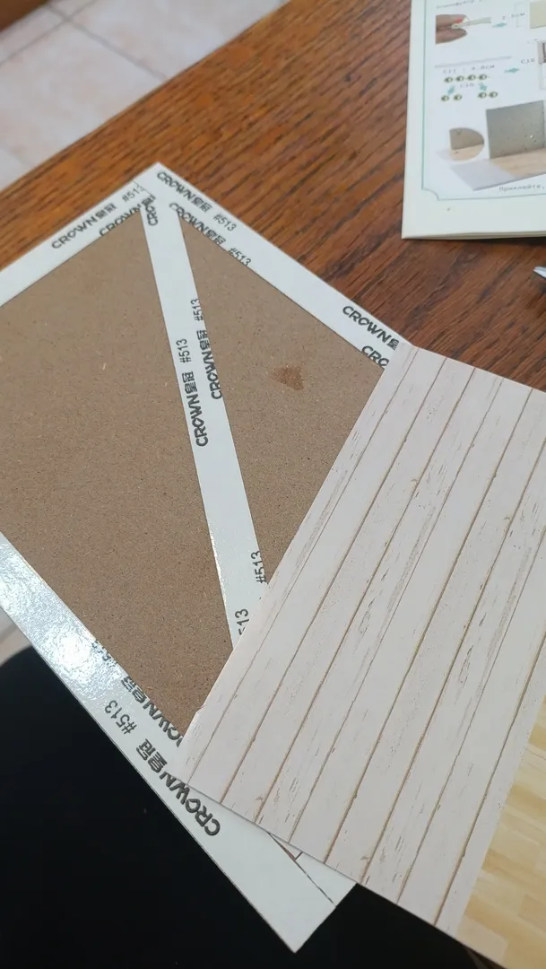 А намечтал он себе домик . Для экономии клея подойдет двусторонний скотч . На него поклеим обои.