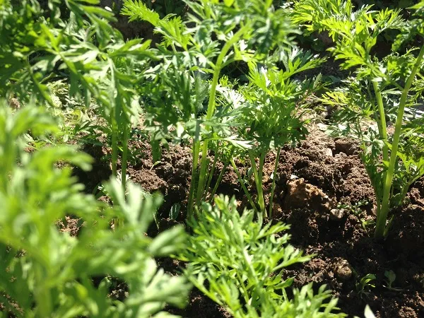 И вот еще что надо делать обязательно - нельзя оставлять дырочки от вынутой морковки. Я после того, как продернула - тяпкой прошла по грядке. И морковке земли подсыпала, и взрыхлила землю.