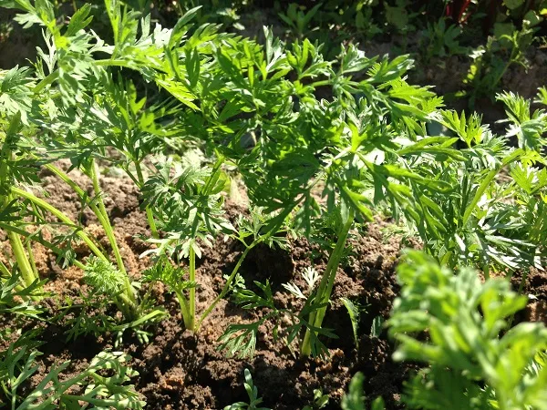 У меня есть еще одна грядка моркови, я на нее не расчитывала и поэтому семян у меня было немного, сеяла их очень аккуратно и если взглянуть , то кажется, что там голяк. Редко сажал и не все взошло. Зато продергивать не надо! А на той грядке, что я показала - видимо не очень старалась экономить. Ботву морковки конечно можно было бы посушить, но что-то не хочется бесполезным делом заниматься, никто ее есть не будет, жа и я могу забыть про нее.