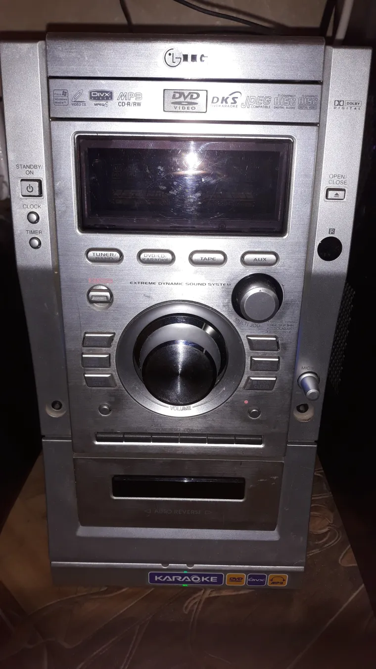Всем привет, а вот и обещанный обзор! А бонусом я покажу, что можно найти в среднестатистических колонках LG с открытым для посторонних предметов фазоинвертором, обзор будео долгим, но возможно кому то интересным, мы его сегодня возможно(точно) разбереп и устраним одну из простейших неисправностей, характерную для всех музыкальных центров из тех времен. Начнем по порядку.... Впереди музыкальный центр выглядит вот так: