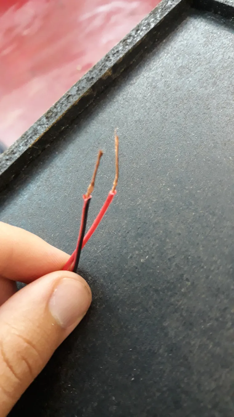 С завода провода были залужены. Но кабель от этой колонки был немного перебит и я решил его укоротить, чтобы не произошло короткое замыкание. Длина кабеля каждой колонки вроде как 1,5 метра. Philips позаботился, чтобы кабель зря не болтался где попало и сделад у этих колонок вот такое примитивное крепление кабеля, но оно как оказалось очень удобно: