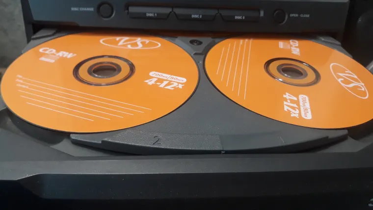 Дисковод имеет 3 места под диски, выполнен в виде так называемой карусели. В особенности этого дисковода - карусель можно открывать не прекращая воспроизведения диска, он просто будет дальше играть но в карусели его не будет.