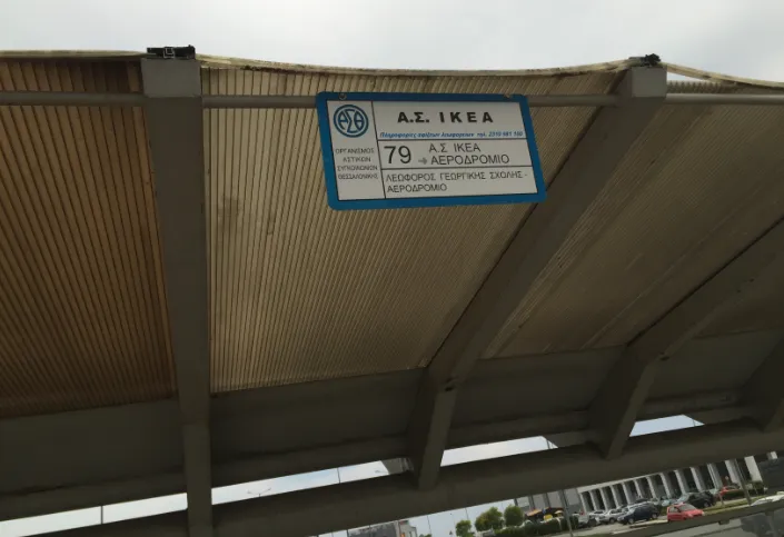 Дождались? Всё, заходим и усаживаемся в автобус 79А. Ехать нам на нём от аэропорта до K.T.E.L Халкидики что то около 20 минут. Сразу предупреждаю, автобус 79А это очень удобный, но, к сожалению, сезонный автобус . Ездит он только с июля по август ( о чем и написано на расписании). Если ваш приезд не совпал с этим сезоном , тогда добираться придется немного сложнее – от аэропорта садимся на 79 (обычный без буквы А) и делаем пересадку у магазина Икея