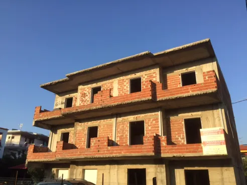 Примерно 7-го сентября в Халкидиках заканчивается основной курортный сезон. И тут же начинается сезон строительный. Надо подновить всё то, что уже есть и построено и построить то, что ещё недостроенного или даже не начато. Строят много. И на побережье и далеко от моря, везде много недостроенных или только начатых домов. Дома не маленькие. Основной материал стройки - бетон, поризованный строительный кирпич, облицовочный кирпичь, натуральный камень.