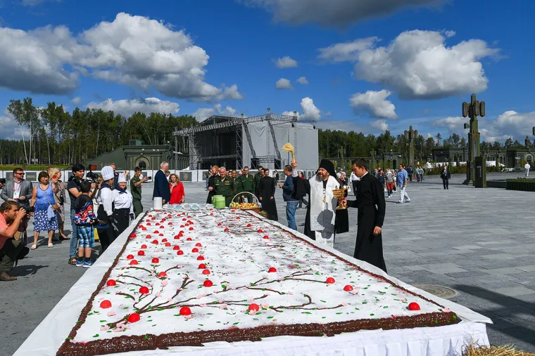 Такой десерт испекли местные жители в рамках Православной яблочной ярмарки, которая проходит в Кубинке Тульской области. Ярмарка развернулась у Главного храма Вооруженных сил РФ. На Соборной площади в честь праздника Яблочного Спаса было установлено большое яблоко. Также все гости могут попробовать известные пряники и пастилу. Шарлотку, которая стала рекордсменом, имела вес 230 кг. Ее изготовлением занимались повара музейно-храмового комплекса. Чтобы испечь такой огромный пирог, было потрачено 2 тыс. яблок, 1700 яиц и 200 кг муки. Размеры шарлотки – 17 квадратных метров. Такого десерта хватило, чтобы угостить 3 тыс. человек.