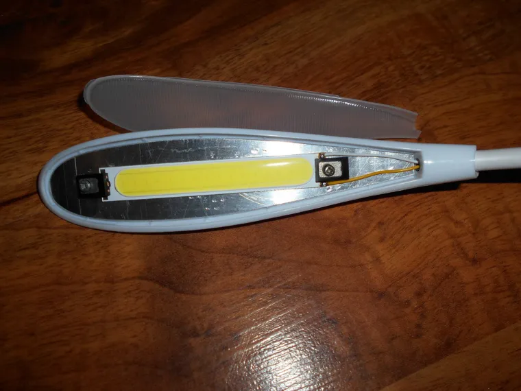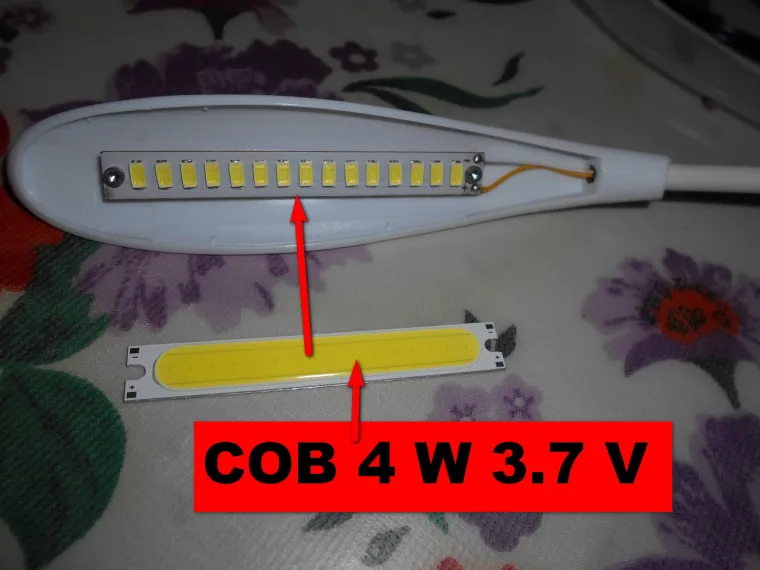Купил малипусенькую настольную лампу и все бы ничего , но уж очень мало света ... Разбираю и дорабатываю . Меняю плату со светодиодами мощностью 1,2 W на COB модуль мощностью 4 W