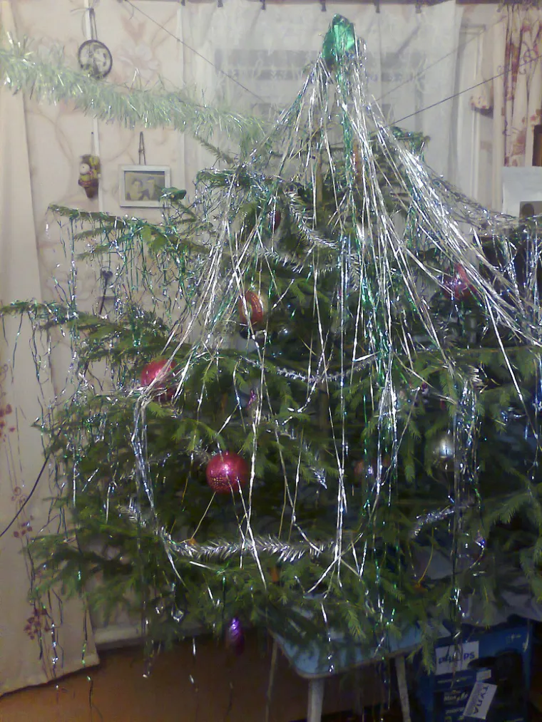 А такая ёлка у меня. Как вы думаете, живая или искусственная)))