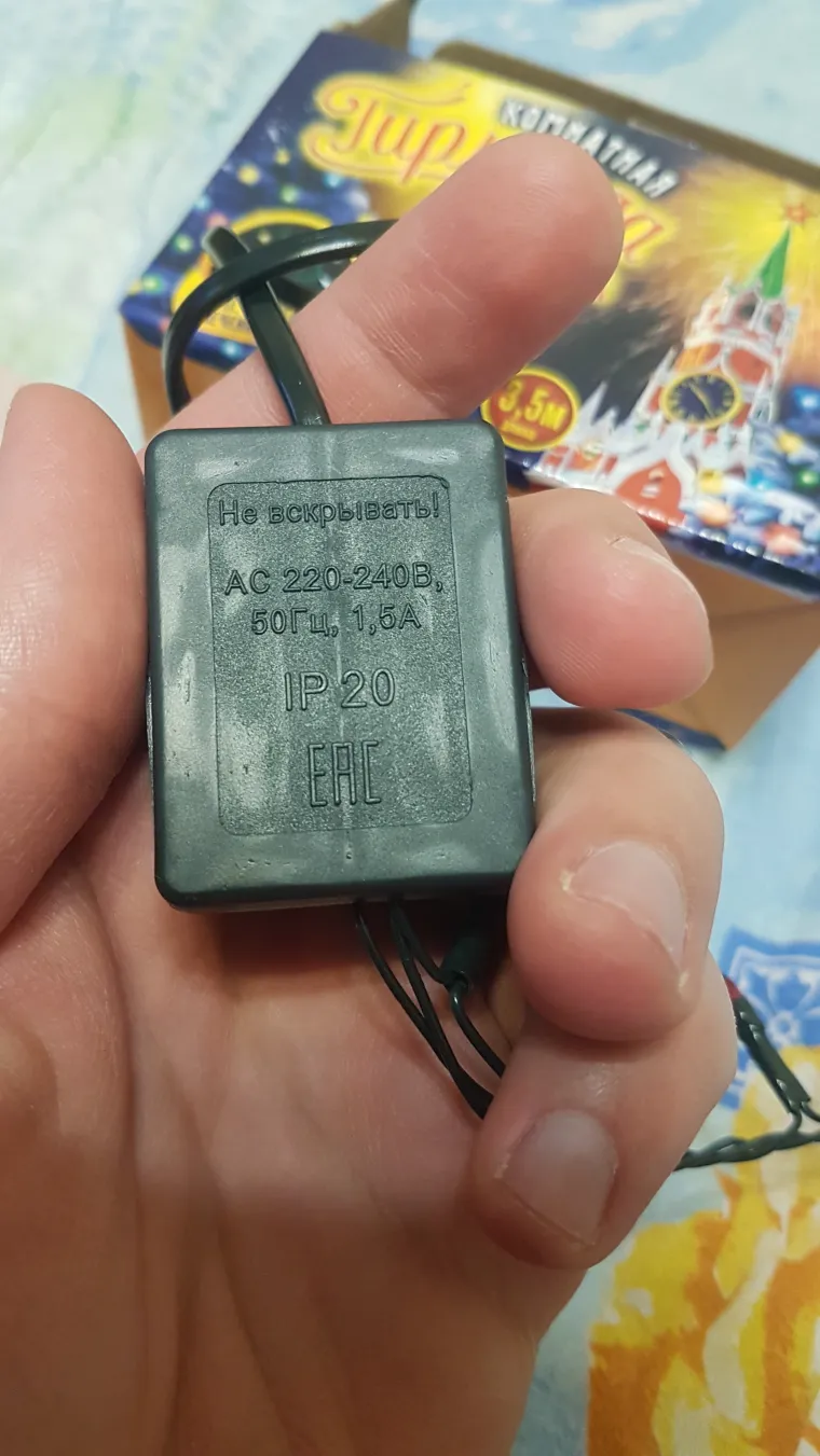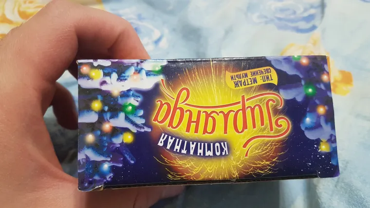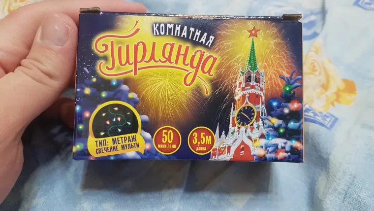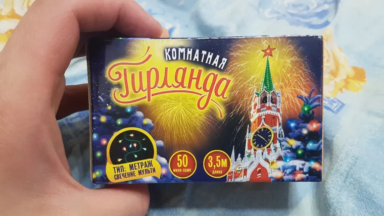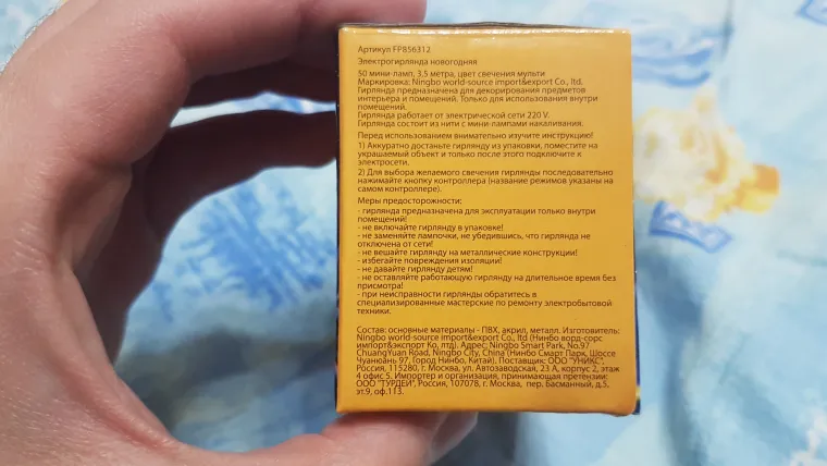 Давайте осмотрим всю коробку, ~~может на ней найдется сообщение о том, что я выиграл миллион долларов или получил ценный приз в лотерею, которую проводят производители гирлянд совсем случайно и редко~~ и найдем какую нибудь забавную или интересную информацию.