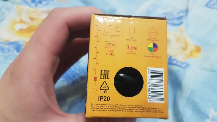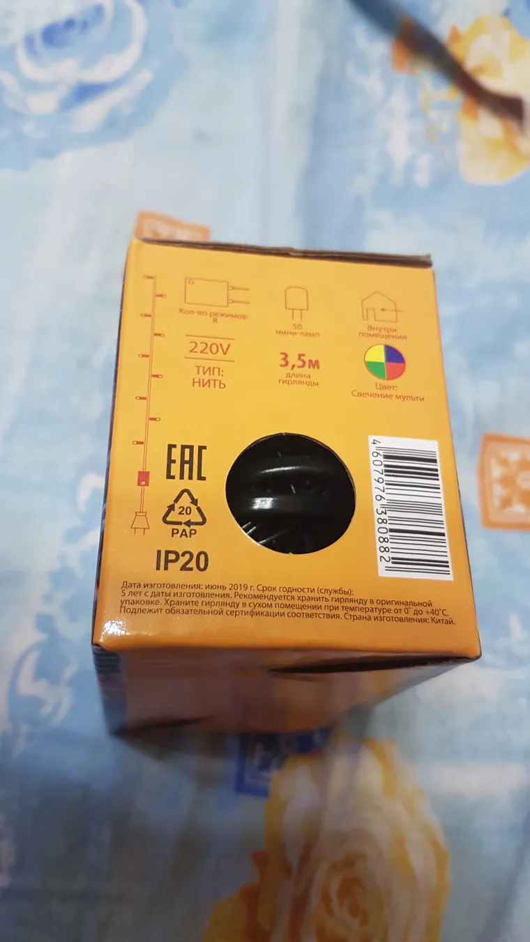 Изготовлена в 2019 году. Срок годности 5 лет, отлично, затем, наверное ~~протухнут лампочки~~ рассыпется изоляция проводов? Хотя, скорее это просто отмазка, чтобы через 5 лет никто не смог тронуть производителя:)))