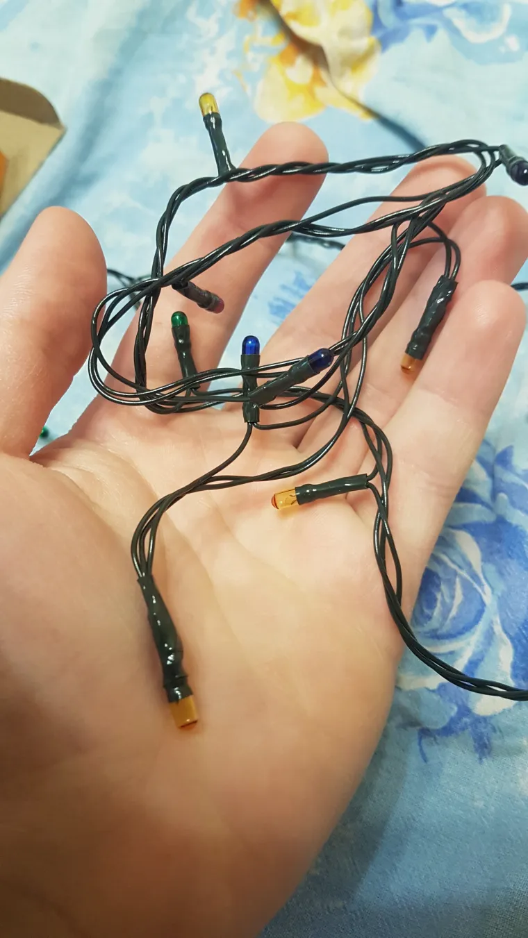 Двухцветные диоды! Круто! К сожалению, не сталкивался с такими гирляндами... А вот я помню, что у вас была гирлянда, которую вы вроде бы ремонтировали? и там использовалась голубая термоусадка?