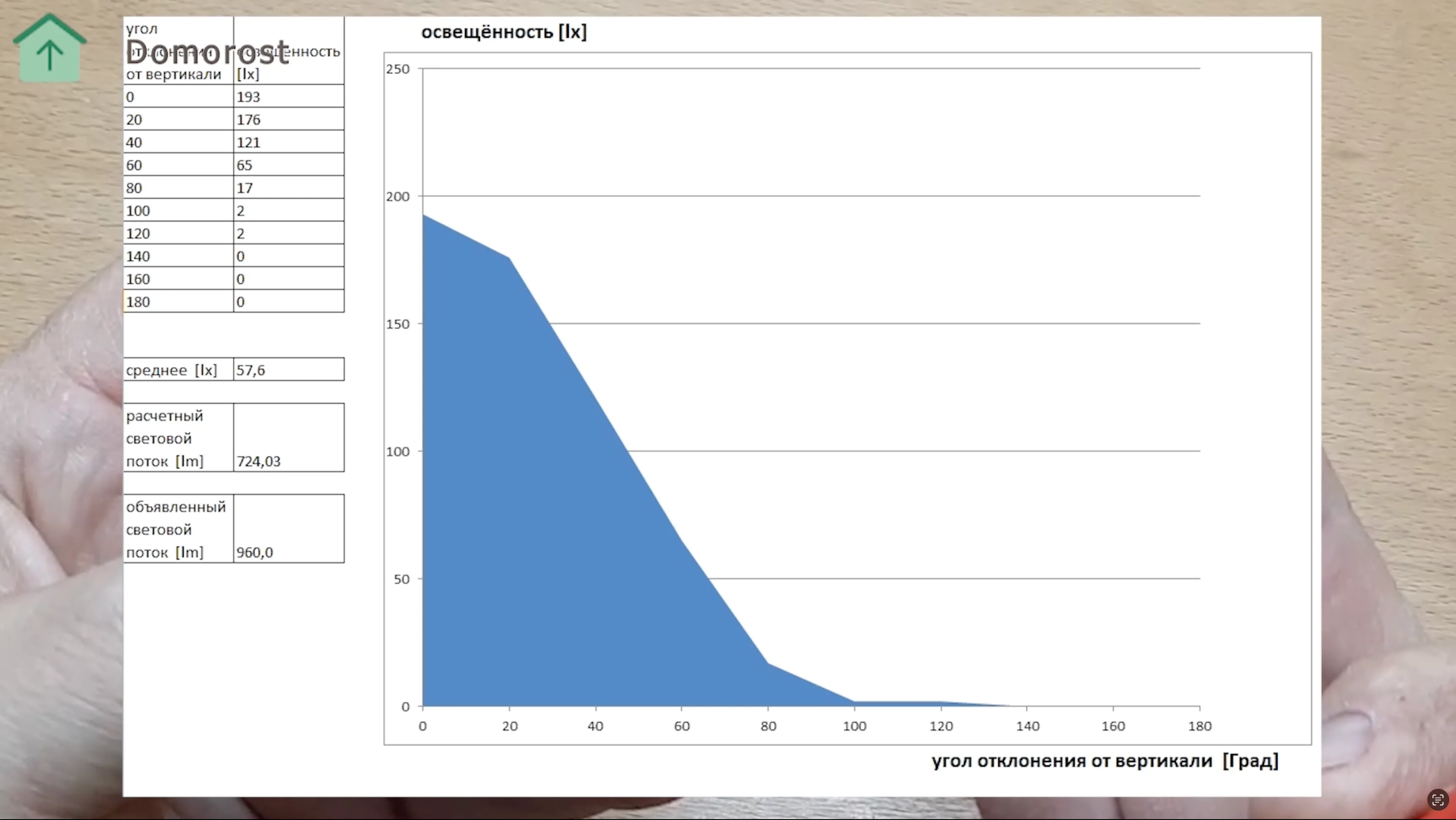 Заявлено: 960 люмен. По моим измерениям — 724 люмена. Ну… не 960, конечно. Но для 9 Вт вполне сносно.